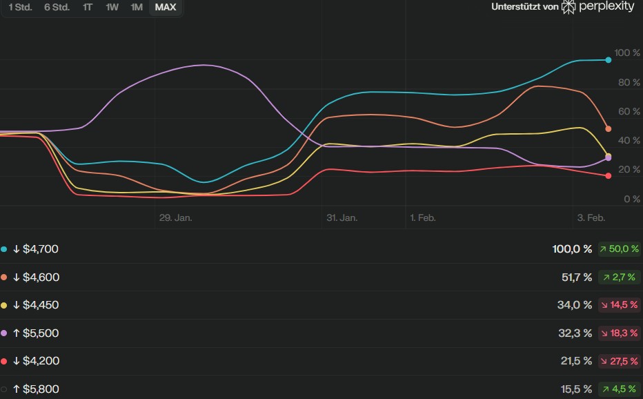 Mehrere Analysen bestätigen, dass Gold sich weiterhin in einem intakten langfristigen Aufwärtstrend befindet und Rücksetzer bislang nur Korrekturen innerhalb dieses Trends waren. Kurzfristig zeigen einige Modelle eine erhöhte Volatilität und sogar eine eher bearishe Tendenz für die nächsten Tage, mit möglichen Rückgängen von über 10–15 % ausgehend von den aktuellen Niveaus. Gleichzeitig liegen algorithmische Prognosen für Ende 2026 deutlich über dem aktuellen Spotpreis, was auf ein „Korrektur im Bullenmarkt“-Szenario hindeutet.